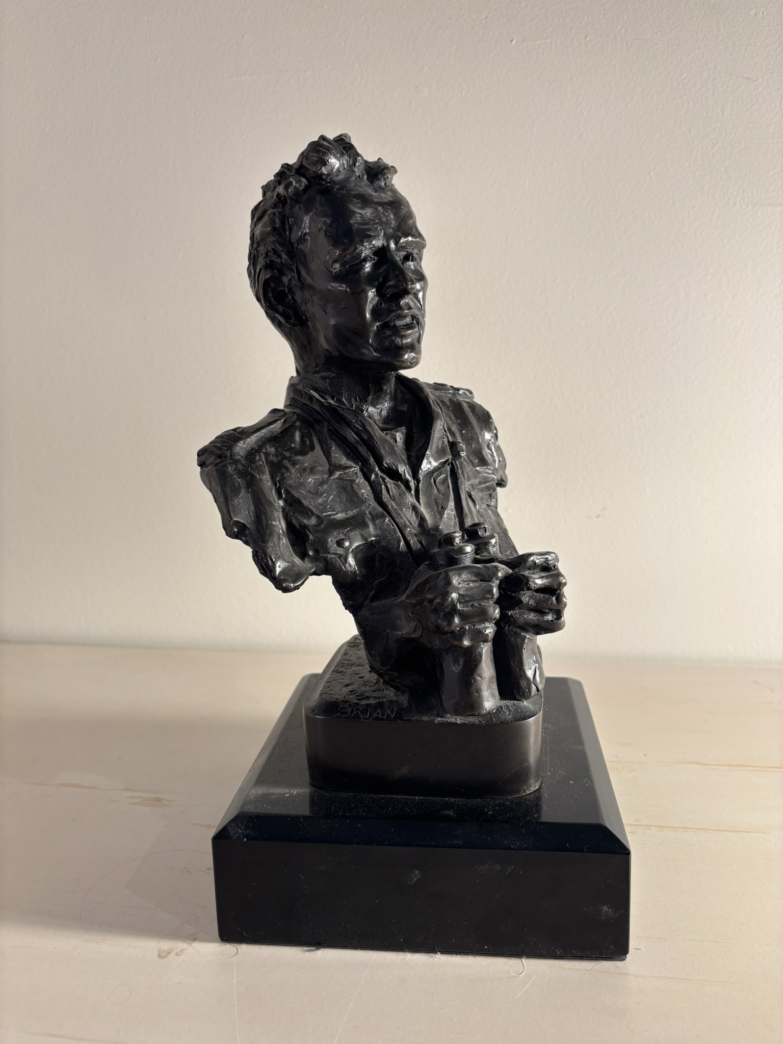 A bust of Brian Barry as a young Royal Navy Lieutenant. 1989