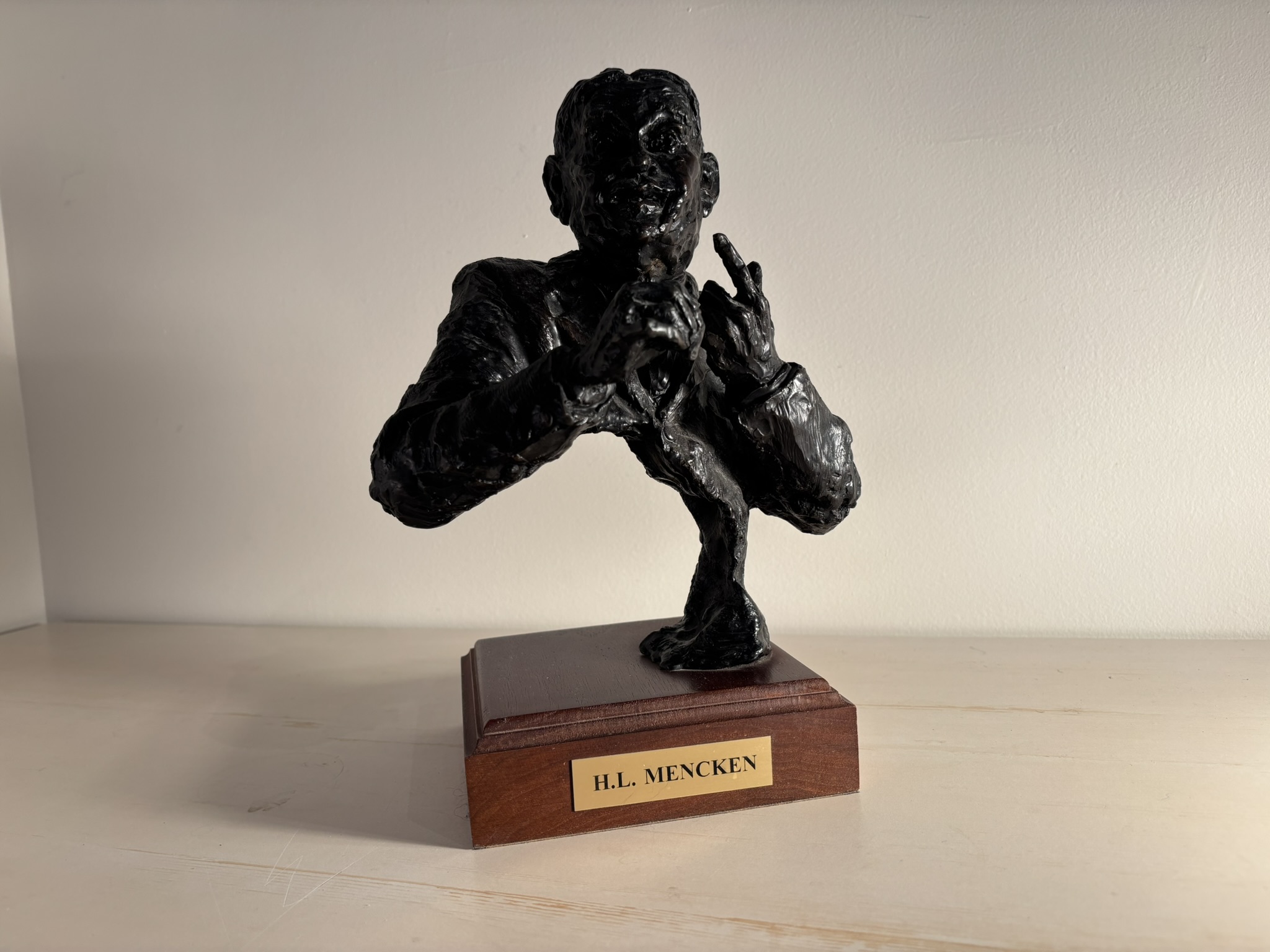 Bronze 12″ x 9″ x 7″ This bust of the acerbic newspaperman was commissioned by a St. Louis Journalist in 2001. It is one of three cast and is the artist’s proof.