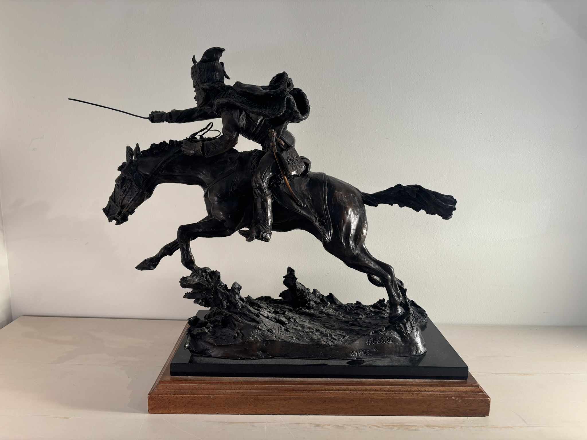 Bronze 21″ x 24″ x 9″ This maquette of a Hungarian hussar was commissioned by Zolt Rumy in honor of his roots in that country. It is one of two cast and is the artist’s proof.