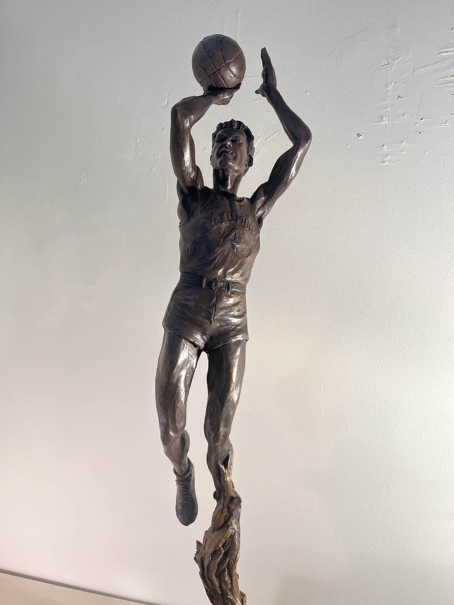 Kenny Sailors Resin 42″ x 8″ x 8″ This maquette was commissioned by the University of Wyoming in 2017 to honor Kenny Sailors who is reputed to have invented the jump shot.